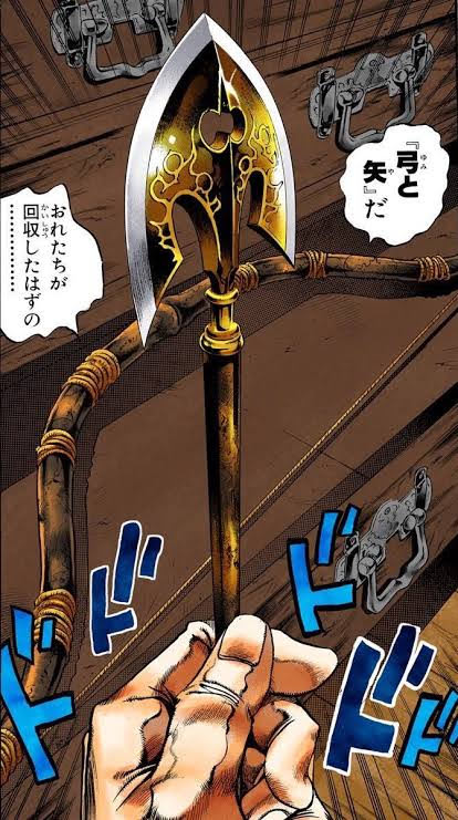 Kid 多分 形兆兄貴が持ってた矢よりは吉良邸にあった矢の方が似てる気はしますが ペンダントのデザインが黄金の矢の装飾に似てるので どうなんでしょうね 他にも矢はたくさんあっただろうし 謎です W